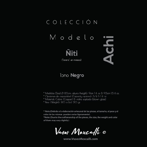 Vasos Mexcalli©️; Achi, modelo “Ñiti”, tono negro